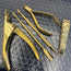 The 5-pc Metal Tool Kit by Hot Tips Beauty are made of Japanese stainless steel to ensure sharpness, form, and lightweight. All gold finish adds personality and style!